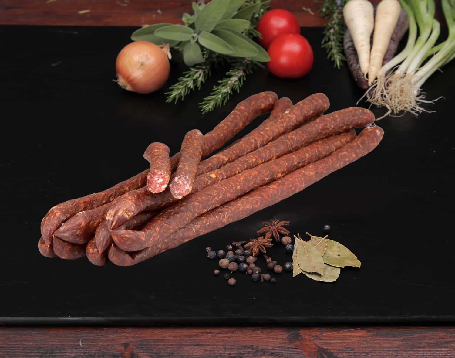 Die Bierbeißer werden aus Schweinefleisch und Naturgewürzen hergestellt und anschließend kräftig geräuchert. Die deftige Rohwurst darf bei keiner Brotzeit fehlen und schmeckt hervorragend zum kühlen Bier. Sie eignet sich auch als deftige, bissfeste Einlage für einen Eintopf.