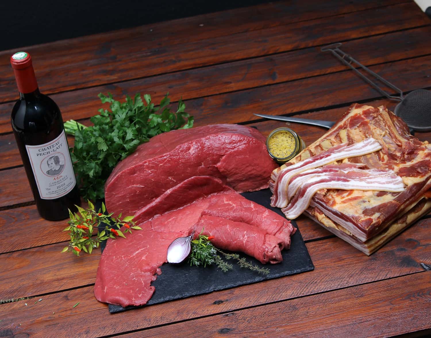 Die vorwiegend aus der Oberschale geschnittene Rouladen zeichnen sich durch zartes und saftiges Fleisch aus. Das muss gut abgehangen und sorgfältig zugeschnitten sein. Rouladen gelingen am besten, wenn sie nach dem scharfen Anbraten in einem Schmortopf mit angebratenen Zwiebeln, Möhren, Lauch und Sellerie in reichlich Flüssigkeit gegart werden. Unsere Rouladen können Sie nach Herzenslust füllen.